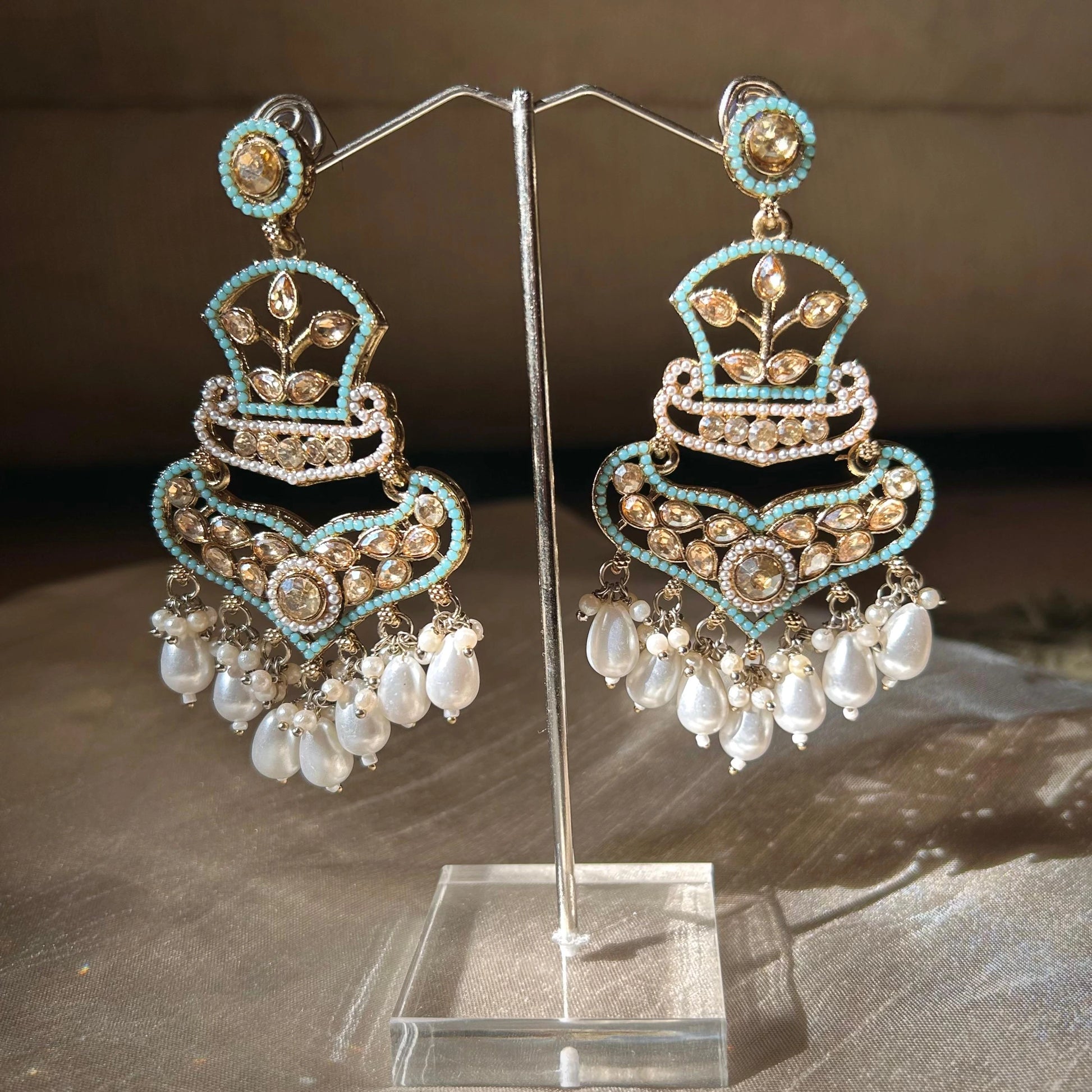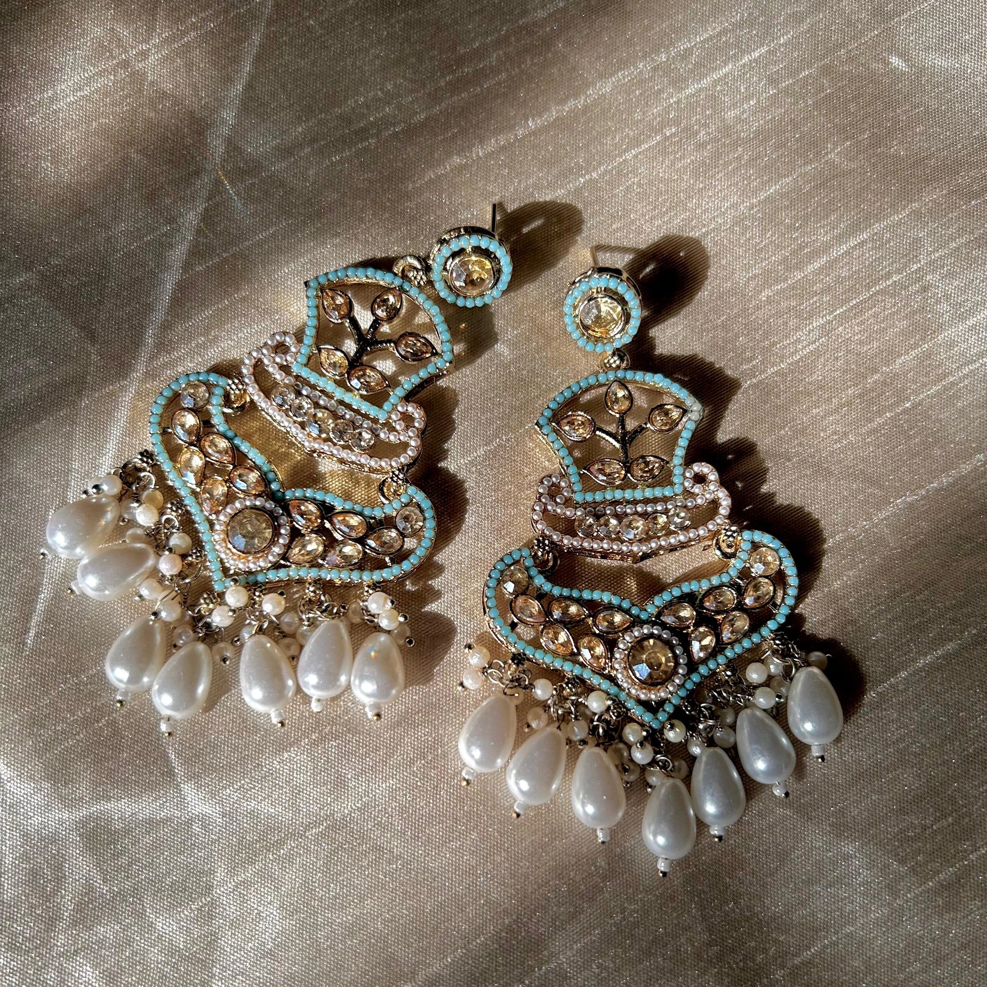 Soft pearls that whisper elegance, these long earrings bring together the charm of tradition and the grace of modern design. Each bead dances lightly with your every turn, adding a touch of romance and serenity to your look.